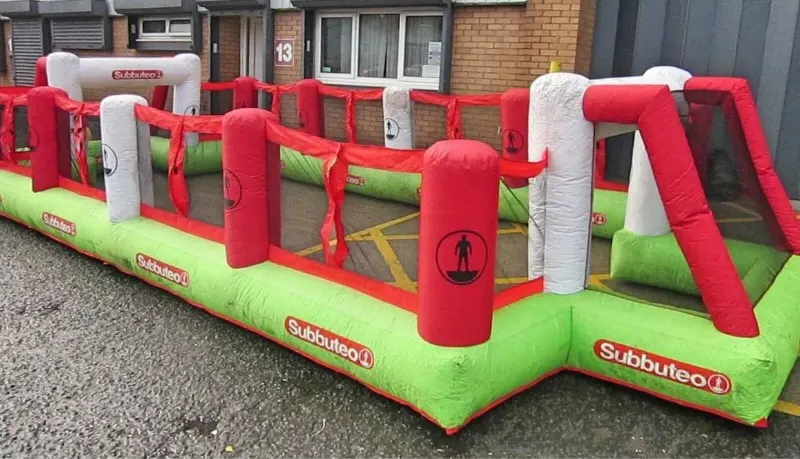 Ahhh My Childhood Memories went crazy when I saw this Giant Inflatable Subbuteo come up for sale, I just had to buy it! This is great fun for the Football Fans and can be enjoyed by both Boys and Girls. We will provide the Soft Football so you can use the Inflatable inside or outside. It doesn’t have a Shower Cover but since when did Rain Stop Play?